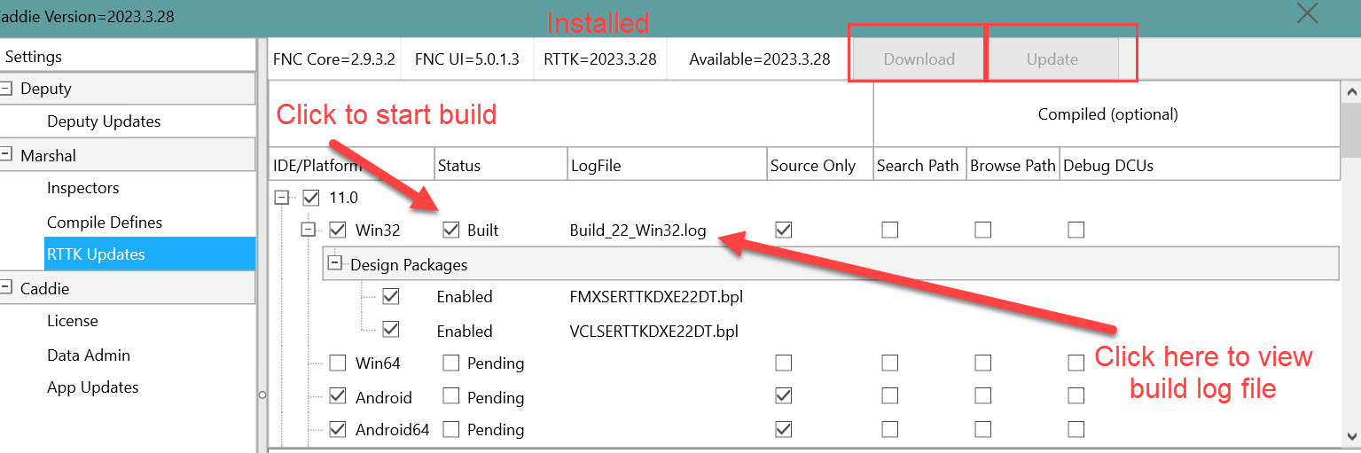 To manually build the source code, locate your project group from the list below. Build in the following order, ensure you build the runtime before the design time: